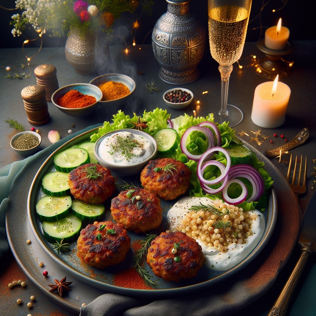 Приготовьте кюфтe – диетические турецкие тефтели из фарша индейки и булгура. Пропорции: 300 г фарша индейки, 80 г булгура, 1 луковица, 1 яйцо, зелень, специи (зира, паприка). Булгур заранее залейте кипятком на 10 минут, остудите. Смешайте все ингредиенты, скатайте шарики, выложите на пергамент. Запекайте в духовке при 180°C 20 минут. Подавайте с йогуртово-огуречной заправкой и зелёным салатом. Калорийность: 120 ккал/100 г Общий вес: 540 г Ешь с пользой, развивай свои навыки и строй тело своей мечты — помни, каждое ПП блюдо приближает тебя к цели! 💪 @ppmenuday