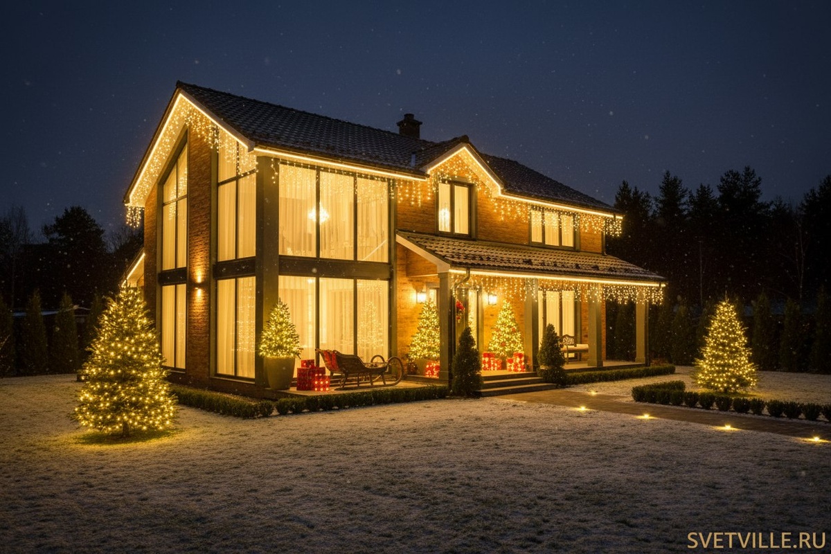 ✨ Украшаем дома и коттеджи под ключ: крыша 🎄 фасад 💡 вход 🏡 деревья и ёлки ✨ Работаем аккуратно и оперативно. Пришли фото дома +7(999)8508849 📲. Светвилл с 2016 года, реализовали более 800+ проектов,делали для известных клиентов. 🔎svetville.ru #svetville #светвилл #подсветка #иллюминация #гирлянды #новыйгод #декор #москва #спб