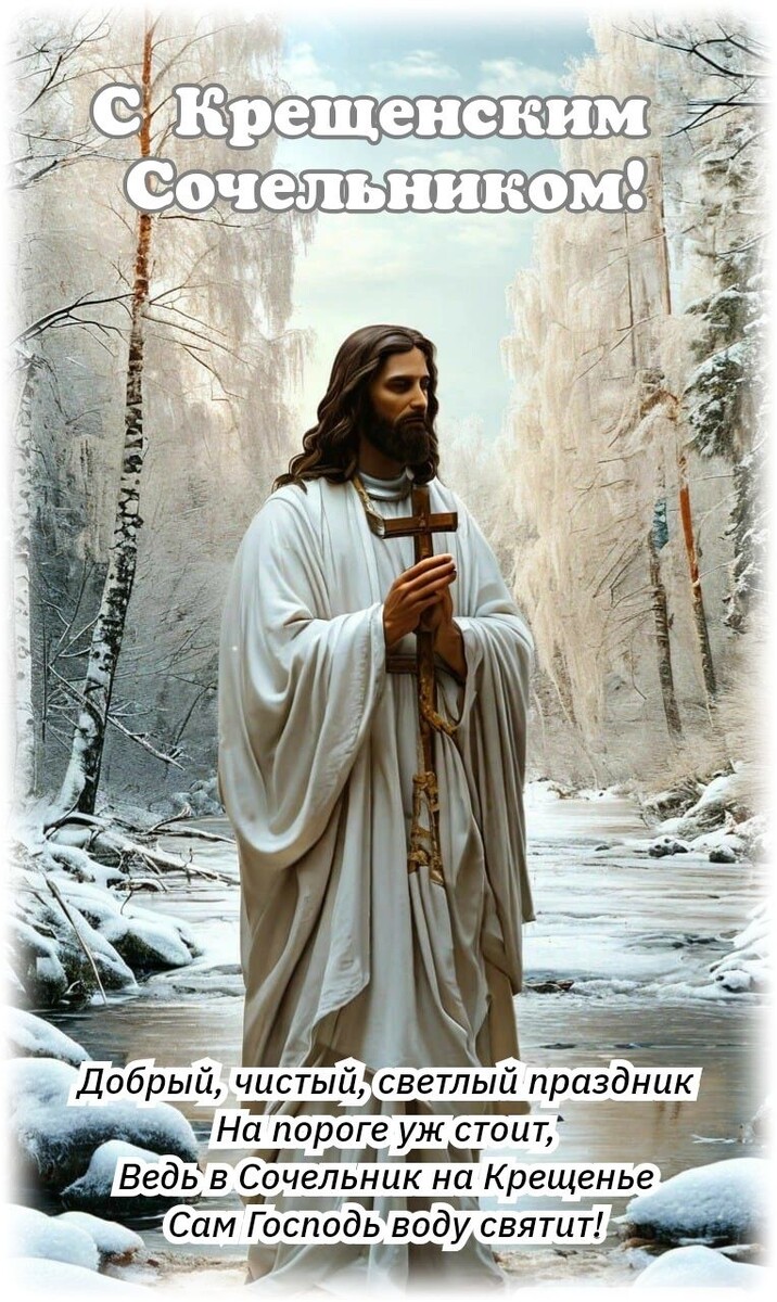 Пусть этот вечер в окружении близких людей станет для вас временем умиротворения, а в душе живут вера и любовь. С кануном Крещения Господня!