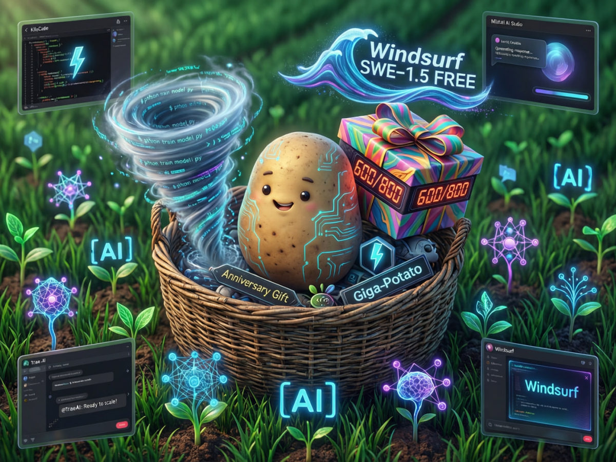 В конце года писал про бесплатные легальные возможности использовать AI — там пока всё актуально (разве что Antigravity лимиты урезали). Но успели появится новые возможности. 1️⃣ В KiloCode стала доступна бесплатно preview новой Stealth Frontier модели под кодовым название Giga_Potato. После preview узнаем, кто за картошкой скрывался 🥔 2️⃣ Появилось бесплатное API для автокомплита от Mistral. И KiloCode сделали инструкцию о том, как это подключить к ним. Подтверждение аккаунта по российскому номеру телефона работает. 3️⃣ У Mistral с недавнего времени есть свой CLI Vibe, в котором можно бесплатно использовать их Devstral 2 (в KiloCode тоже доступно бесплатно). 4️⃣ В Trae раздают Anniversary Gift. 600 fast request для Free Users и 800 для Paid Users. В этот раз у меня заработал полностью без VPN. И они наконец-то добавили поддержку AGENTS.md и Agent Skills. 5️⃣ В Windsurf примерно до марта доступна бесплатно всем пользователям их модель SWE-1.5 (но эта версия без Cerebras, т.е. не 900 т