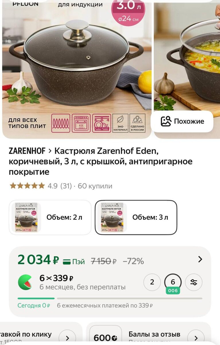 ! Кастрюля Zarenhof Eden, коричневый, 3 л, с крышкой, антипригарное покрытие https://market.yandex.ru/cc/8Z7htJ 💛 JANU55-AF — скидка 100₽ на один любой заказ от 5000₽ ✅ Канал по скидкам 🔣 Бот с промокодами