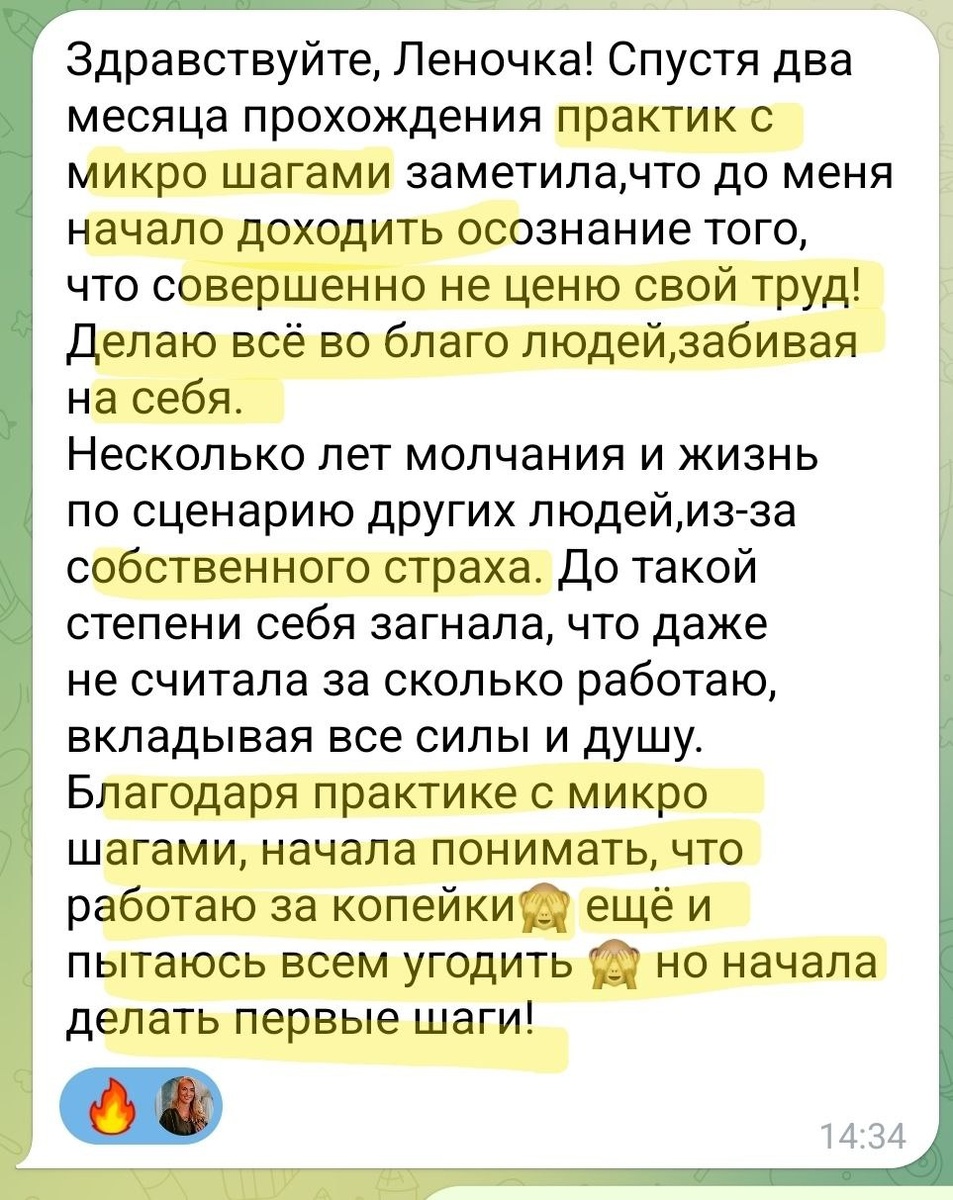 Девочки, на днях пришло такое сообщение от моей клиентки, которой 2 месяца подряд делала личную стратегию месяца и она делала микро-шаги