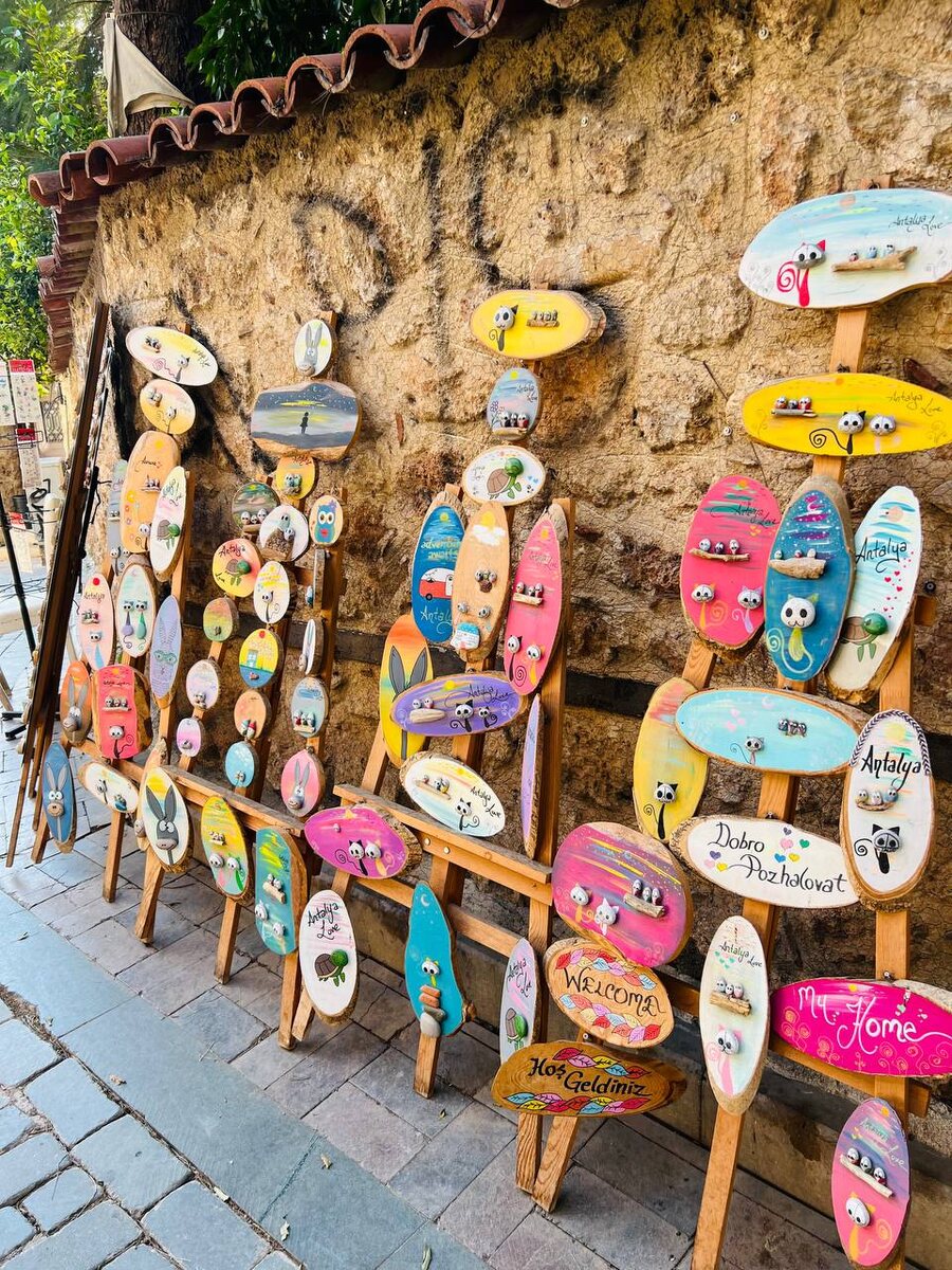 : «В Турции в любой непонятной ситуации открывают базар»🙂 И это верно! Мне кажется такого количества базаров не встречала ни в одной стране. В Турции множество талантов разных мастей, которые с удовольствием продают плоды своего творчества, зарабатывая тем самым себе на хлеб. Дорога от ворот желаний к Минарету Йивли сопровождалась торговыми рядами, где продают свою продукцию ремесленники. Специи, пряности, расписные платки, кожаные сумки и ремни, кальяны, изделия из золота, керамика, глазки Nazar Bohjuk от сглаза, турецкие кошки. Базар в Старом городе (Old Bazaar) – невероятно колоритный и красивый. Будьте готовы, что торговцы вас будут «домогаться» в хорошем смысле слова и без покупок вы не уйдете. Пс. Советую приобрести: ковры или коврики из шерсти ( от 15$ зависит от размера) серебро, изразцы великолепные, серьги, браслеты с сердоликом, чай и специи.