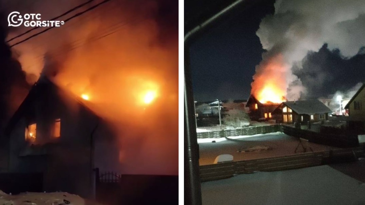 Двухэтажный коттедж сгорел ночью в Новосибирской области