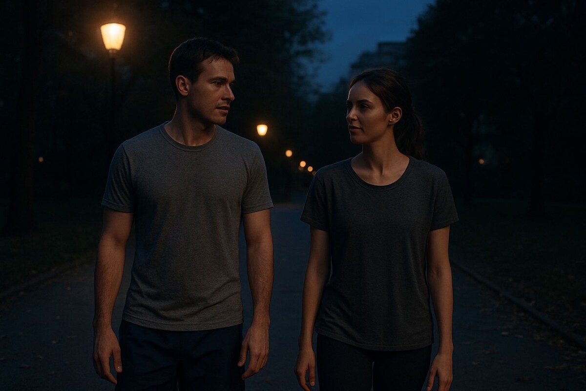 Маршрут был выверен до метра: три круга вокруг стадиона, затем по аллее к пруду и обратно. На втором круге он заметил её. Женщина в тёмно-синих лосинах и серой футболке бежала в том же ритме по встречной полосе. Их взгляды встретились на секунду – и тут же отвернулись.