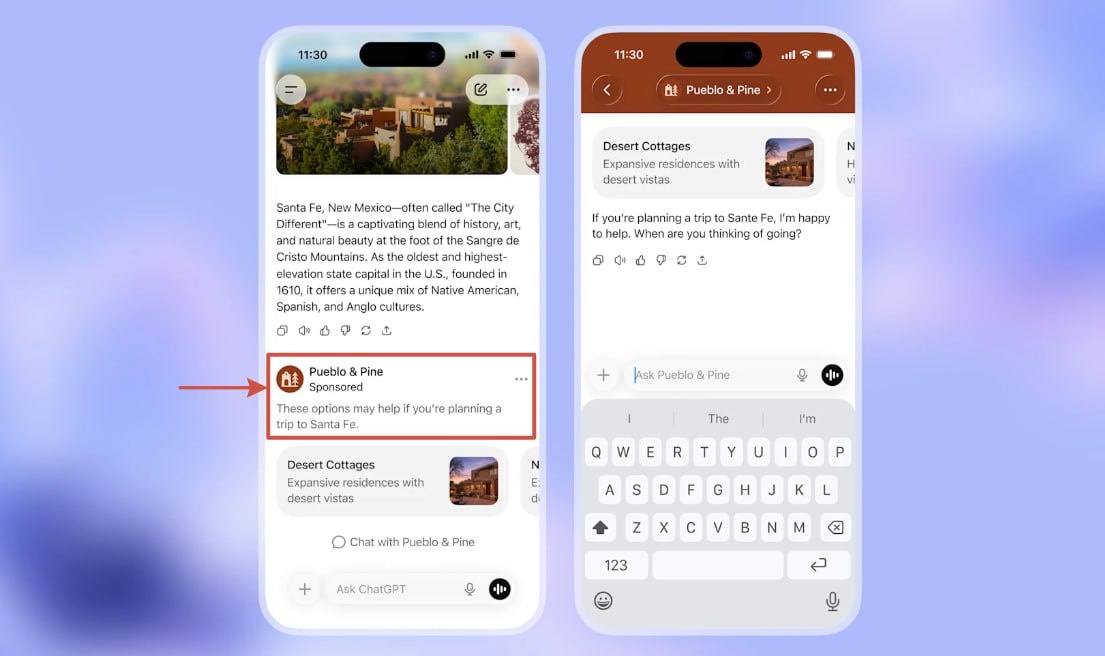 Π Π΅ΠΊΠ»Π°ΠΌΠ° ΠΏΠΎΡΠ²ΠΈΡΡΡ Π² ChatGPT Go ΠΈ Π±Π°Π·ΠΎΠ²ΠΎΠΉ Π²Π΅ΡΡΠΈΠΈ Π² ΠΊΠΎΠ½ΡΠ΅ Π΄ΠΈΠ°Π»ΠΎΠ³ΠΎΠ², Ρ ΠΏΠΎΠΌΠ΅ΡΠΊΠΎΠΉ "ΡΠΏΠΎΠ½ΡΠΎΡΡΠΊΠΈΠΉ ΠΊΠΎΠ½ΡΠ΅Π½Ρ". ΠΠΎΠ»ΡΠ·ΠΎΠ²Π°ΡΠ΅Π»ΠΈ ΠΏΠ»Π°ΡΠ½ΡΡ