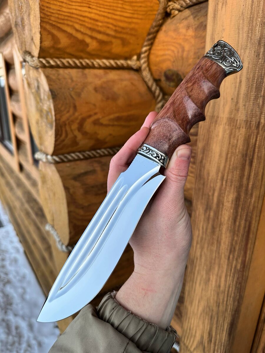 Сделан для настоящей работы: Этот нож справится с любыми испытаниями — строгание, рубка, колка. Клинок из легендарной стали Х12МФ с криообработкой — сочетание прочности и износостойкости. Фигурные долы не только украшают, но и увеличивают функциональность. Рукоять — анатомическая, из мельхиора и резного бубинги. Лежит в руке надёжно и удобно даже при длительной работе. Твердость 61–62 HRC — нож легко режет и долго держит заточку. Заточен в бритву 👌 🎁 Цена: 25 756 ₽ 🔥 Со скидкой сейчас: 13 320 ₽ В комплекте — крепкие ножны из натуральной кожи. Можно заказать формованные ножны (+8000 ₽). 📲 Заказать сейчас: Пишите 👉 [@Nazarklinokbot](https://t.me/Nazarklinokbot) или WhatsApp/Viber: +7 910 134-38-31 #ножкузница #ручнаяработа #сибиряк #х12мф #подарокохотнику #кузницаназарова #туризм #охота #рыбалка