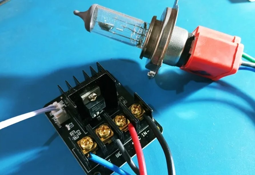 Далее подключил валявшуюся у меня автомобильную галогенную лампу