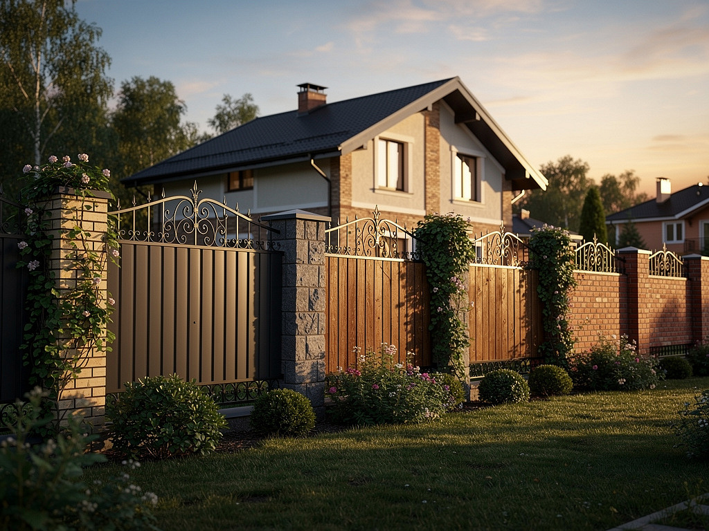 Или представьте забор с имитацией натурального камня — он добавляет солидности участку. Особенно если подобрать цвет под
