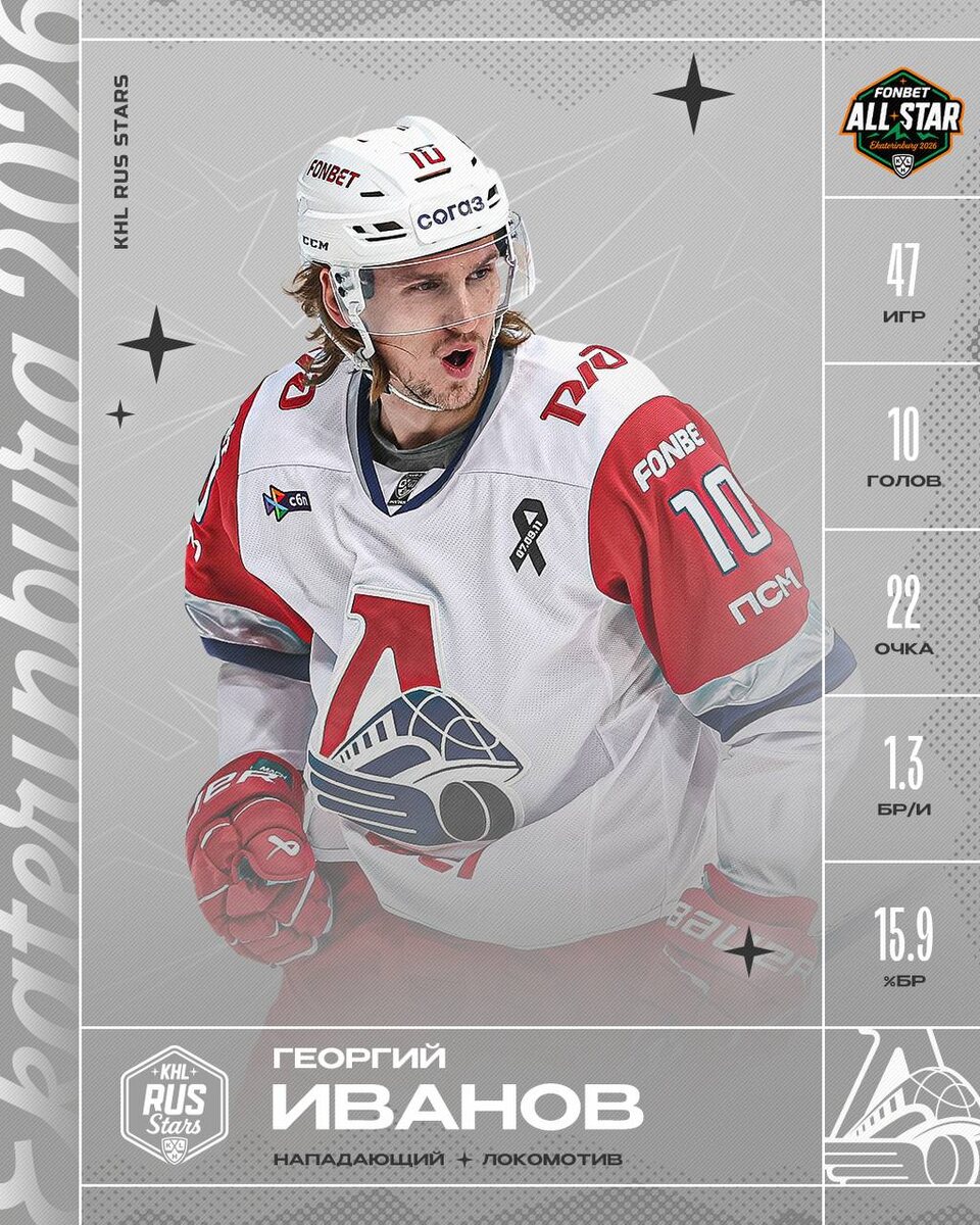 Эффективный центр «Локомотива» Георгий Иванов 🚂 впервые в карьере отправится на Фонбет Матч Звёзд КХЛ!