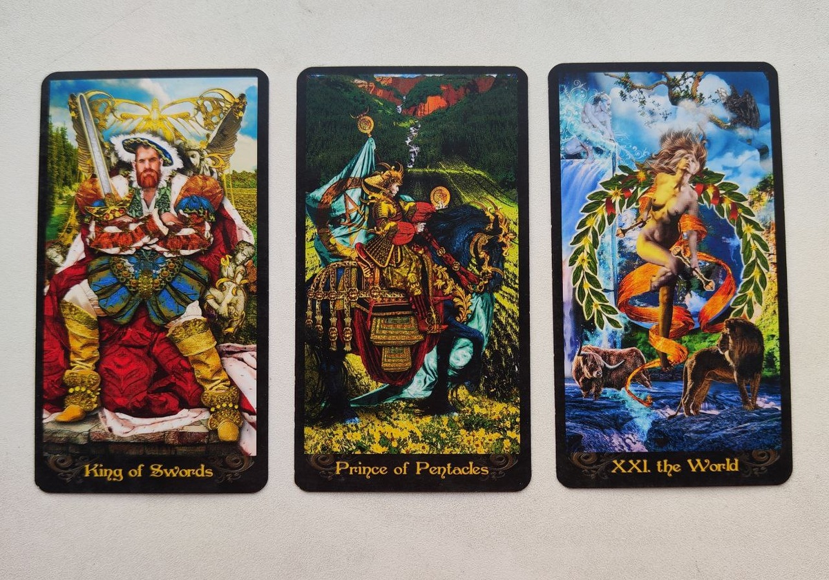 🌟 Сегодня мы рассмотрим три мощные карты дня: Король Мечей, Рыцарь Пентаклей и Мир