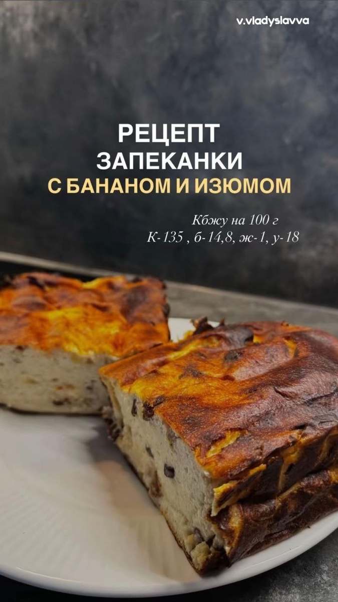 Рецепт запеканки с бананом и изюмом