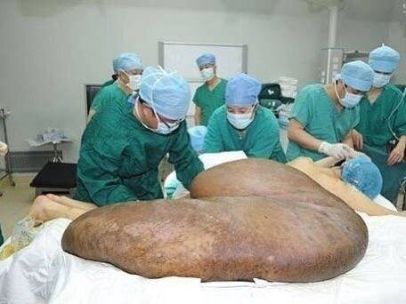 Врачи из китайской провинции Шаньси удалили 37-летнему мужчине по имени Ян Жинбин опухоль весом 110 килограммов. Ян Жинбин страдает нейрофиброматозом. О своём заболевании он узнал, когда ему было 12 лет. За считанные дни родинка в районе копчика мальчика выросла до размеров кулака. Тогда же он впервые лег под нож хирурга, однако заболевание продолжало прогрессировать. Регулярно появлявшиеся на теле китайца опухоли приходилось оперировать все чаще. В какой-то момент он устал обращаться к врачам, и результат не заставил себя ждать – за несколько лет очередная опухоль мужчины выросла до 110 килограммов. Последние годы он вообще не вставал с кровати. В итоге Ян Жинбин понял, что так больше продолжаться не может. Последняя на сегодняшний день операция в жизни китайца длилась 16 часов. В настоящий момент Ян Жинбин чувствует себя нормально Представляешь, а этого могло бы и не быть…