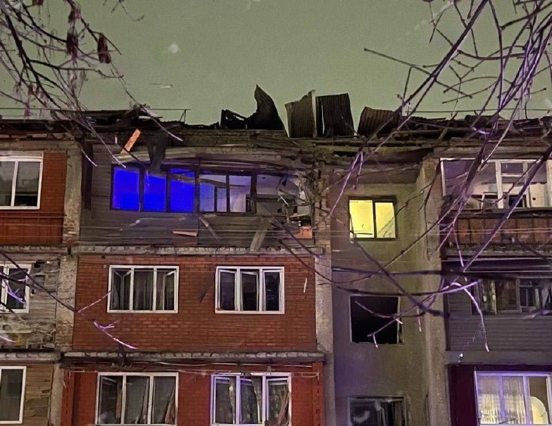 Последствия падения обломков БПЛА на жилой дом в Беслане в Северной Осетии