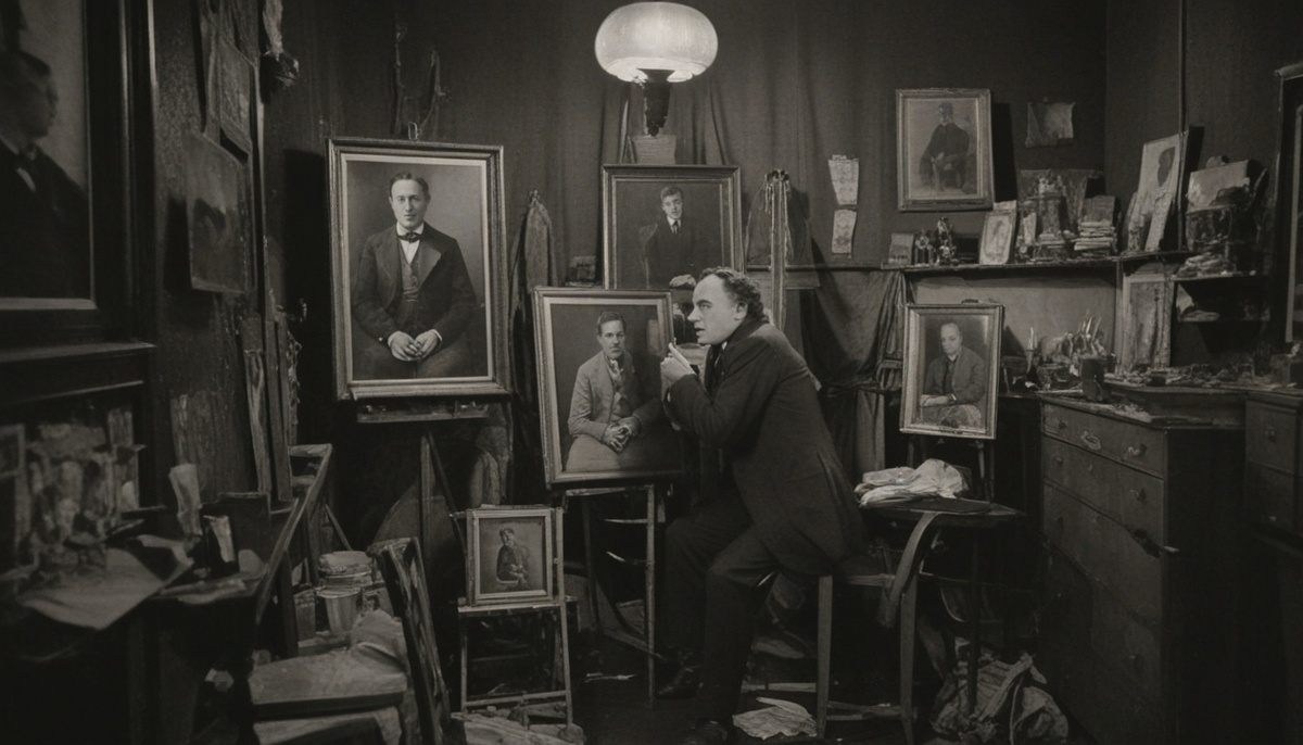 В гримерной царил полумрак, лишь несколько ламп освещали пространство, отбрасывая причудливые тени на стены. Двое молодых художников, приглашенные Гудини, увлеченно работали над его портретом. Маэстро сидел в кресле, погруженный в свои мысли, позволяя кистям запечатлеть на холсте свой образ.