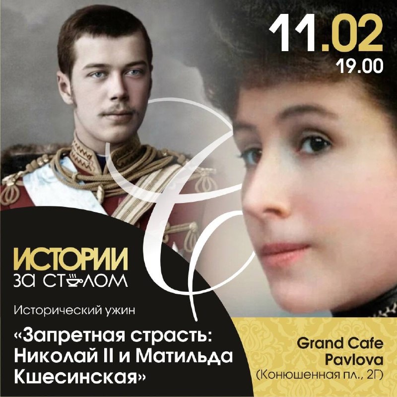 » 11 февраля в 19.00 Grand Cafe Pavlova (Конюшенная пл., 2Г) 🤴💃Одним из самых громких романов Российской империи был роман цесаревича Николая и балерины Матильды Кшесинкой, о них шептались, складывали множество легенд. Вместе с культурологом Миланой Каурин мы попытаемся разобраться, как же выглядели эти отношения. Узнаем, при каких обстоятельствах и где состоялась их встреча, почему изначально этот роман поддерживался, даже денежно, что дарил Николай возлюбленной и куда они ездили в тайные путешествия. ❤️🔥Любовные многоугольники, страсть, радость и разочарования: в этой истории есть место всему. В меню: 1️⃣Салат с ростбифом, печеным перцем и соусом тоннато; 2️⃣Катанка с томленой говядиной, соусом демиглас и трюфельным маслом; 3️⃣Десерт «Павлова»; 4️⃣Вода без газа; 5️⃣Чай/кофе на выбор. Стоимость - 6490 рублей. 📝Запись по запросу @AnnaShuniaeva или купите билет на сайте izastolom.ru