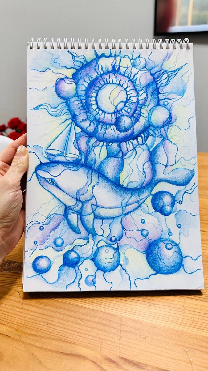 Рисовала несколько дней, как будто мне спешить не нужно, появилось чувство. После завершения рисунка кит стал похож на сома) Получила огромное удовольствие от рисунка💙" ✔️Каталог Школы Нейрографики "Чистый Лист ": https://neurograficaschool.ru/
