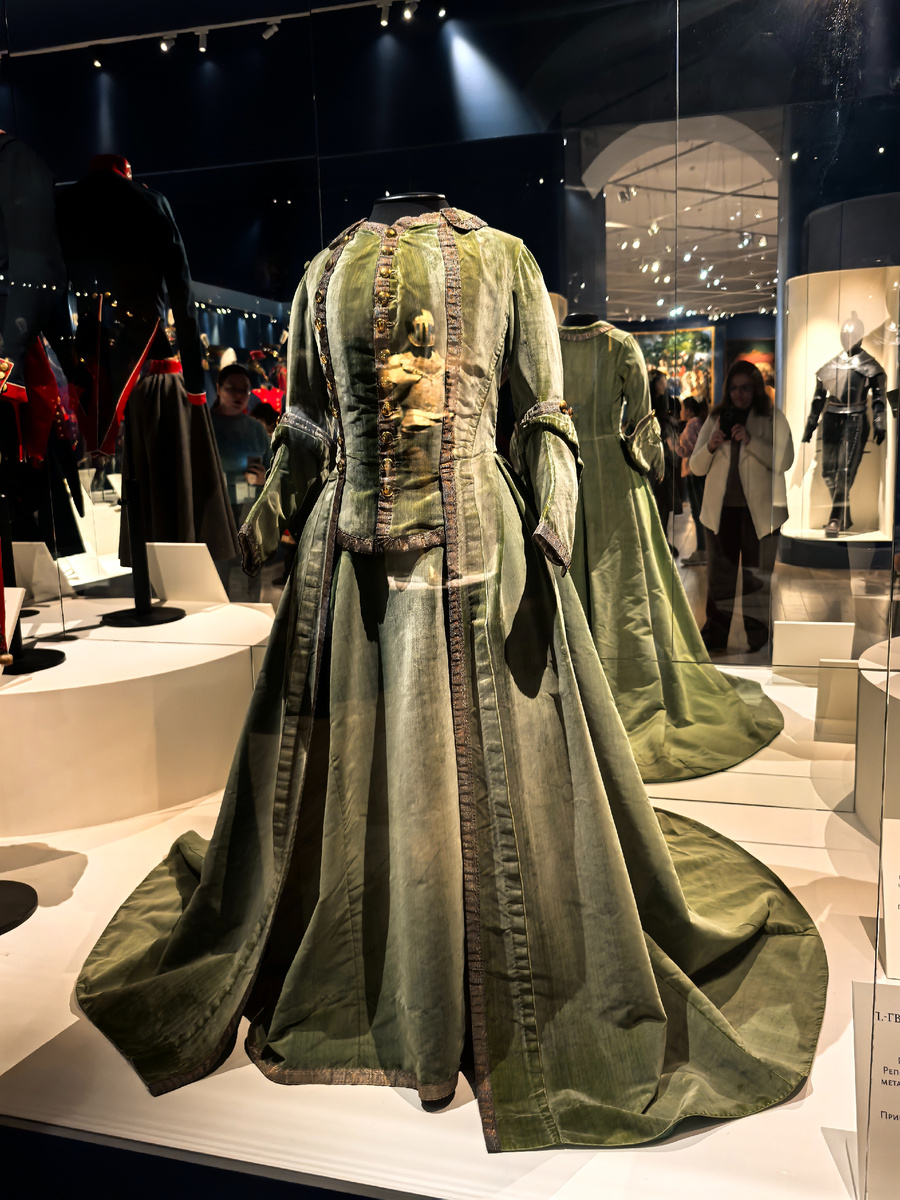 В некоторых источниках цифра доходит до 160 см., указывается и 157 см. Побывав вчера на выставке "Сокровища императорских резиденций" в Историческом музее, и посмотрев на мундирное платье Императрицы, не могу сказать, что она была ростом 160 см., скорее 157 см., в действительности. Для того времени такой рост считался нормой. Стоит отметить, Екатерина II за счет обуви на высоких каблуках, пышных причёсок и шляпок смотрелась гораздо выше. На фото представлено то самое платье, которое принадлежало Императрице Екатерине II, а теперь это музейный экспонат. Мундирное платье лейб-гвардии Семёновского полка было сшито на Екатерину II в 1766 г. Состояло из двух частей: казакина (распашная кофта, название пошло из Франции в 18 веке) и юбки. Платье из ткани репс шёлковый, с золочёными нитями, украшено декоративной лентой (галун). Семёновский полк в те времена был личной охраной монарха, отсюда и приставка "лейб-гвардия", что означает дословно "у тела". Слово leib в переводе с немецкого