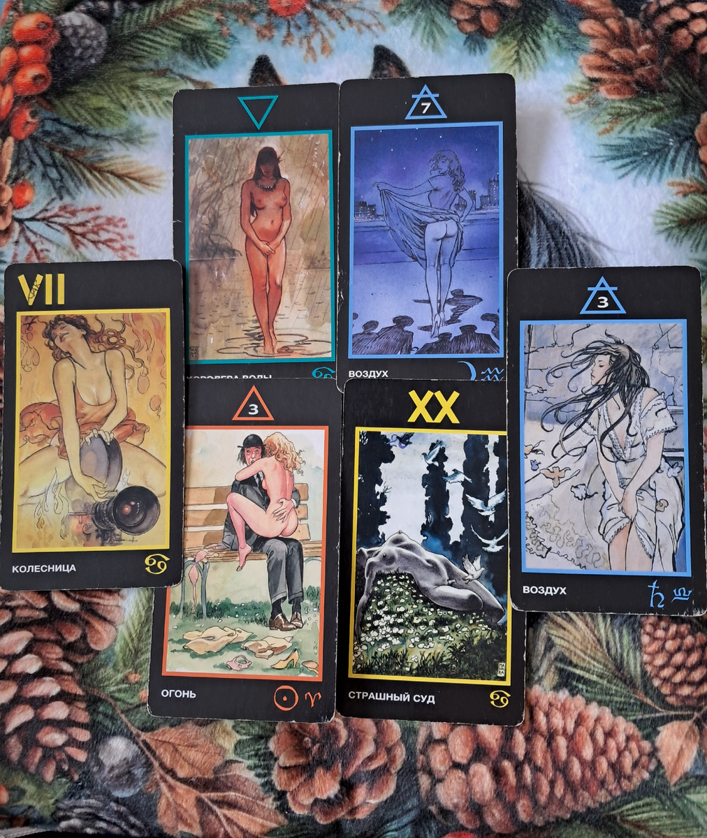 Прекрасный и очень чувственный расклад на колоде Манара! Она говорит на языке страсти, подсознательных желаний и глубокой эмоциональной алхимии. Для Водолея, знака воздуха, интеллекта и свободы, такой расклад указывает на год мощной трансформации через чувства.
