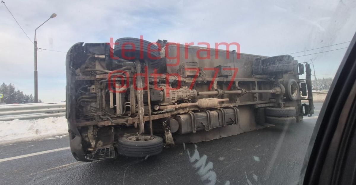 На Ленинградском шоссе близ Зеленограда сегодня утром опрокинулся грузовик