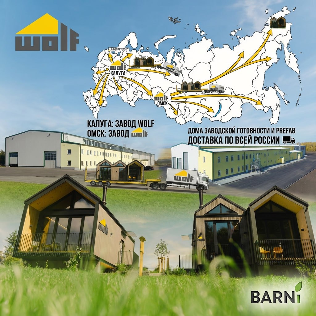 4️⃣ Четыре формата — S, M, L и XL — для любой семьи на вашем участке. 🏭Мы изготовим дом на наших заводах в Калуге и Омске и доставим его прямо к вам на участок — остаётся только заехать и жить. https://t.me/BARNivillage #гибридныйкаркас #SteelWoodHouse #WOLFSystem #BARNivillage #BARNi