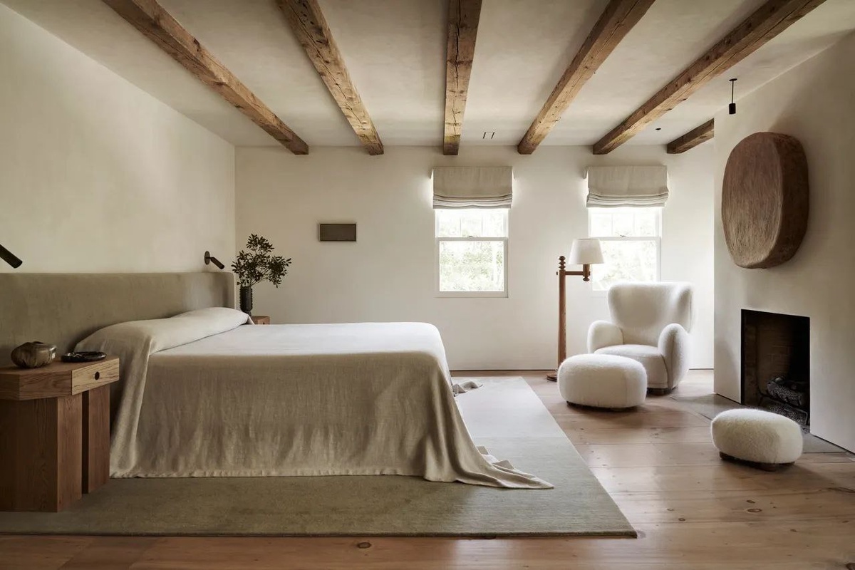 Кровать с просторным изголовьем, обитым тканью, мгновенно создает ощущение уюта
