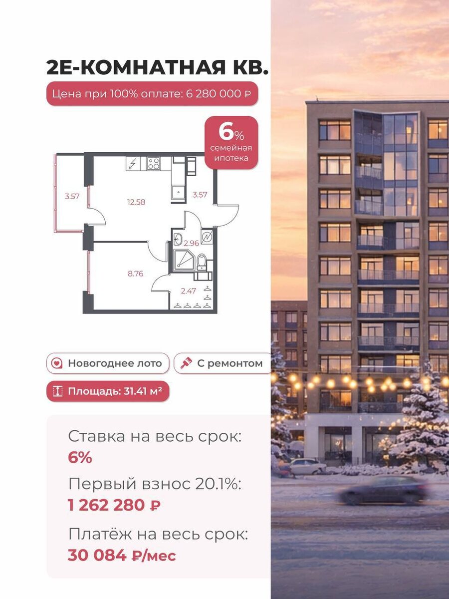 » 🎄 Подборка квартир по семейной ипотеке 6% Площадь: от 31.41 м² Первый взнос от 1 262 280 ₽ Платеж от 30 084 ₽/мес С чистовой отделкой Стоимость не окончательная, цена может быть ниже. Напоминаем про акции «Скидка 1% на квартиры на 2ом этаже» и «Новогоднее лото: скидки до 120 000 ₽» Скидки между собой не суммируются, но суммируются с программой лояльности Успевайте зафиксировать выгодные условия 🎁🎄 #питер #новостройки