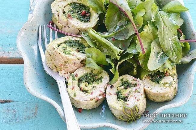 Филе куриной грудки без кожи распластать и слегка отбить до толщины 0,5 сантиметра. Посолить и поперчить.