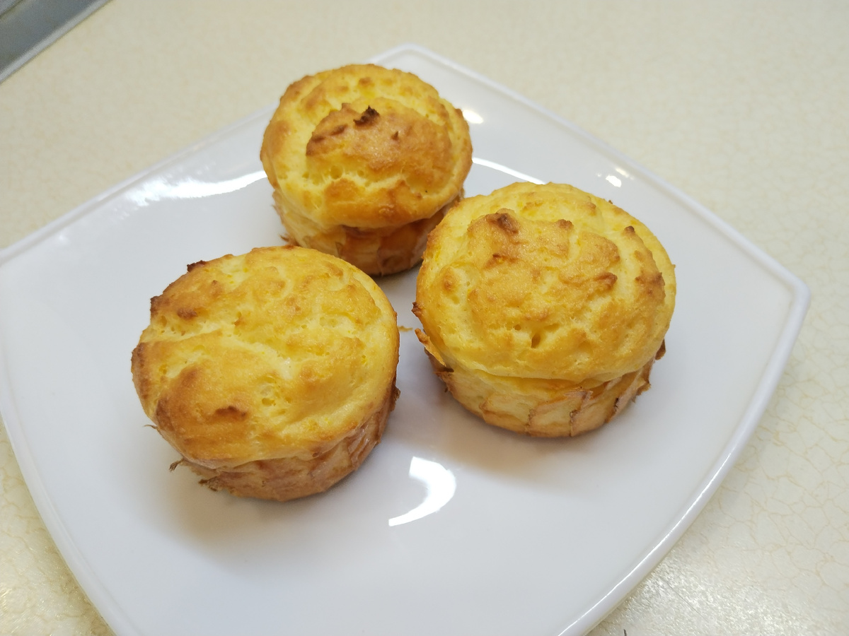 1. В одну ёмкость положить творог, яйца, подсластитель, соду, свежевыжатый сок апельсина. Пробить бледером до однородности.