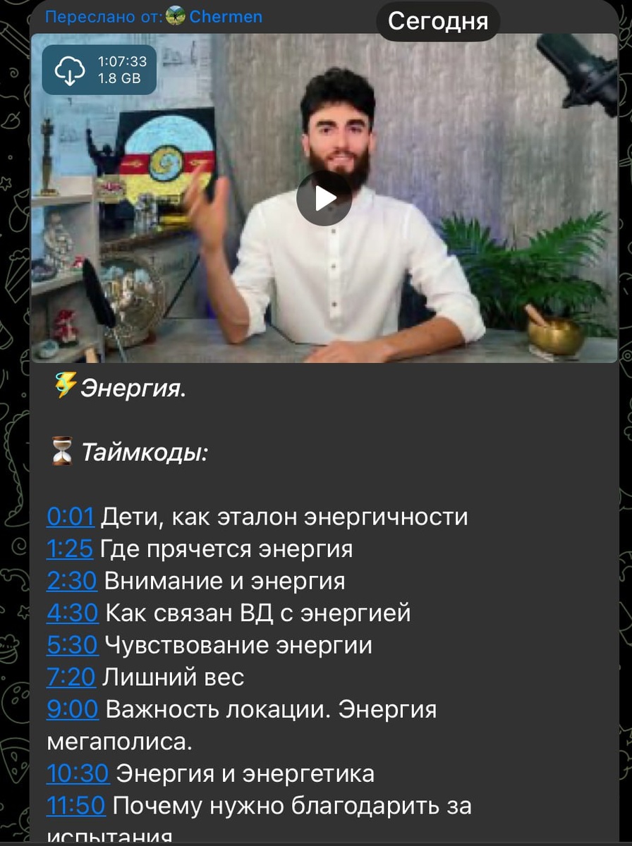Ну а в Племени, тем временем лекция про "Энергию". Таймкоды на вашем экране.
