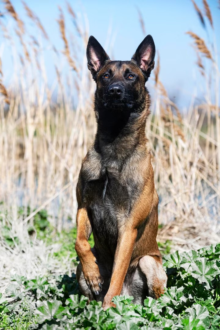 - Малинуа (Malinois): Короткошерстная, с рыжим или сером окрасом и черной маской.