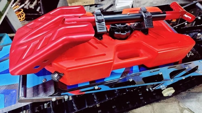 Сделал переходник чтобы установить быстросъемное крепление лопаты поверх экспедиционной канистры на тоннель сноубайка Когда катаетесь на сноубайке в глубоком снегу важно не только чтобы у вас с собой была лопата по технике безопасности, но и также важно, чтобы ею можно было быстро воспользоваться, ведь в случае лавины счет идет буквально на минуты. Для этой задачи сделал пластину-переходник для установки быстросъемных креплений на хвост тоннель сноубайка. Отверстия для установки креплений деланы в двух вариациях как для продольного размещения так и для поперечного.Пластина крепления выполнена из стали 3 мм, поэтому прочности более чем достаточно. Проверил, установить пластину можно на штатное крепление поверх экспедиционных канистр различной емкости 3, 5 и 10 л. Пока не проверил тольк на 4 л. Крепление позволяет разместить лопату по центру оси сноубайка, что исключает случайные задевания по время катания а также смещение развесовки.Крепление легко снимается путем откручивания барашка б