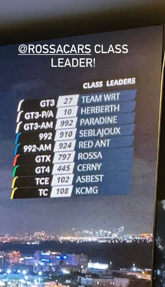 Наша команда была лидером гонки, до инцидента. Вот комментарий пилота и руководителя команды Романа Русинова: «Я шёл по своей траектории при обгоне Porsche. В такой ситуации обгоняемый автомобиль обязан контролировать обстановку в зеркалах и оставлять место. К сожалению, произошёл контакт, и машина развернулась и врезалась в стену. В гонках на выносливость при плотном трафике подобные ситуации, увы, возможны». Тем не менее на протяжении более чем 20 часов автомобиль демонстрировал отличные показатели, надёжность и высокий темп. Около 12 часов он лидировал в своём классе, наглядно подтвердив конкурентоспособность, эффективность нашей стратегии и высокий уровень работы всей команды.