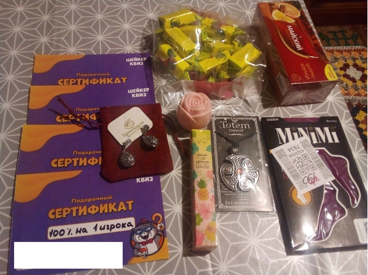 От Нового года немножко вздохнули - начинаем сезон дней рождений. А там уже и 23 февраля с 8 марта подкрадываются))) В январе дни рождения у мамы и свекрови. У мамы юбилей - 55. И она классная девчонка)))) Хотелось и особенный подарок собрать, и как-то сделать, чтоб он шёл от человека. Ещё не подарила, так как отмечать будем в воскресенье. Цитата от мамы: "А что, один день только день рождения?" ))) Сертификат на участие в квизе. Серёжки. Про амулет мама когда-то говорила, что хочет. Прикольный чай и любимые конфеты. Бальзам для губ и масло для кутикулы я для себя открыла, прекрасные штучки. Из носков хотела какую-нибудь розочку скрутить, в итоге просто получился рулончик за компанию ко всему этому. Уложила всё в коробочку. Модный подарочный бокс)))) Коробочка сверху. Топпер случайно попался в магазине, взяла, пригодится))))) Всё остальное ещё не приехало, заказала на Озоне, покажу пока только картинку. Скучное и нужное)))) Полотенца с котиками. Классная водостойкая тушь и бальзам для