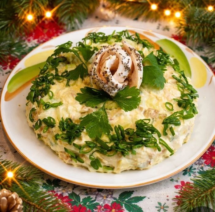 СОЧНЫЙ, СВЕЖИЙ САЛАТ «ЧЕБУРАШКА» — НЕЖНАЯ КУРОЧКА, ХРУСТЯЩИЕ СВЕЖИЕ И СОЛЁНЫЕ ОГУРЦЫ, МАРИНОВАННЫЕ ГРИБЫ, ЯЙЦА И ГРЕЦКИЕ ОРЕХИ, КОТОРЫЕ