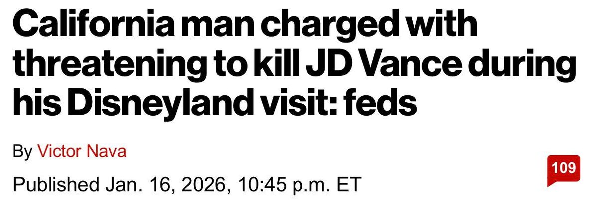 Д. Вэнса Марко Антонио Агуайо расписался в интернете до того, что обещал убить вице-президента США Дж.Д. Вэнса и других политиков во время визита в Диснейленд, сообщает New York Post. Агенты Секретной службы оперативно пришли к нему, после чего Агуайо признал вину и предоставил доступ к своему аккаунту. Первое судебное заседание назначено на вторник в Санта-Ане.