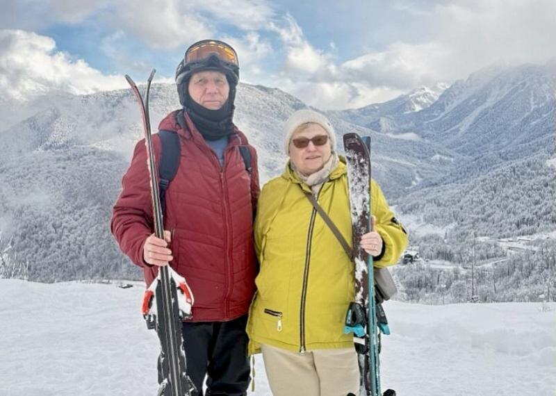 Свой 50-летний юбилей семейной жизни отметили на курорте «Роза Хутор» в горах Сочи пара Михаила и Людмилы Голубиных из Балашихи. Помимо «молодоженов». отметить праздник с ними приехали сын и дочь со своими избранниками, а также трое внуков. При этом Михаил не только наслаждался природой и красотой Кавказских гор, но и катался на лыжах. По словам мужчины, в 10 лет он катался на беговых лыжах с самодеятельными креплениями на Родине в Рыбинске, с берегов Волги. А на горные лыжи встал 10 лет назад, в 64 года. Примером ему послужили дети и внуки. Михаил уже катался в Подмосковье, Домбае и не первый раз приезжает в «Розу Хутор». На курорте он катается на трассах от 1800 метров. По словам мужчины, катание дает энергию и веру, что ты еще многое можешь. Пара рассказала пресс-службе курорта, что познакомилась в мае 1975 года, а 10 января 1976 поженились. После этого купили «Москвич» и начали путешествовать по стране, впоследствии с детьми. Для райдеров от 70 лет ски-пасс курорта стоит 1 рубль. Т