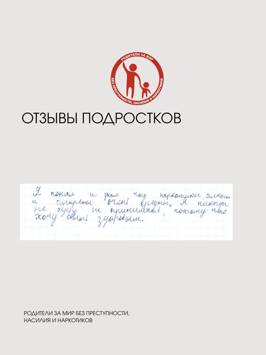 ⬇️ 1️⃣Я понял и узнал, что наркотики, алкоголь и сигареты очень вредны. Я никогда не буду их принимать, потому что хочу быть здоровым. 2️⃣ Сегодня я поняла, что телефон нужно ограничивать, а не сидеть в нем целый день. Также надо не забывать, что кроме телефона есть и другие обязанности. Никто не запрещает переписываться и звонить по важным делам. Всё надо в меру. 3️⃣ Я решил для себя, что курить и пить - это плохо! Поразмыслив, я решил не приближаться к наркотикам. 4️⃣ Из этой беседы я уяснила, что нужно подавать и следовать хорошему примеру. Важны не материальные ценности, мы должны ценить человека не за деньги. Нужно быть дружнее и общительнее. 5️⃣ Я узнала, что надо соблюдать гигиену, есть полезную еду: жиры, белки и углеводы. Нельзя курить грызть ногти. Вы можете повлиять на то, чтобы делать жизнь подростков лучше, 🖥 узнайте как: https://roditelizamir.ru/donations/