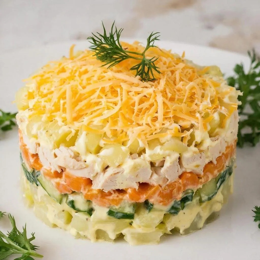 Салат «Ёжик» — вкусный слоёный салат, получивший своё название благодаря внешнему виду, напоминающему иголки ежа. Вот классический рецепт приготовления: