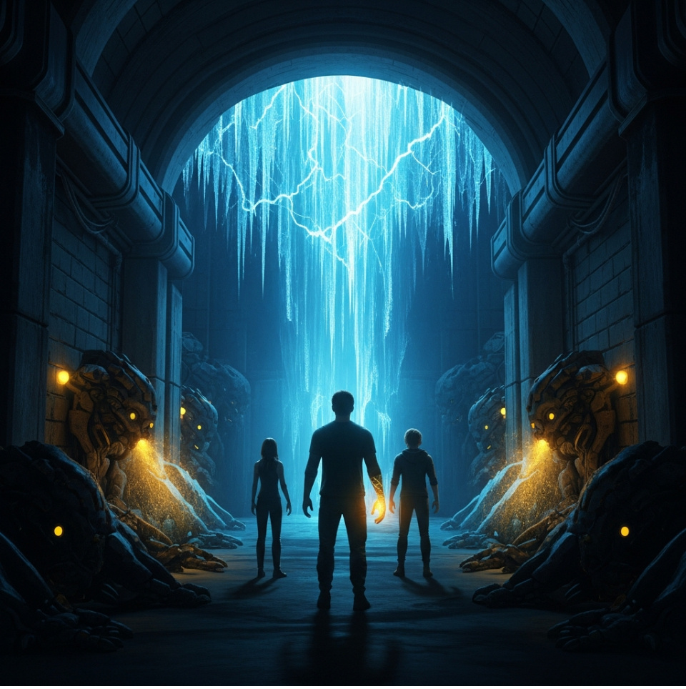 В конце коридора зияла арка, ведущая в центральный зал. Оттуда лилось настоящее, физическое сияние — голубое, резкое, пульсирующее в такт какому-то гигантскому сердцебиению. И там, в такт этому свету, отдавалось в наших новых чувствах нечто иное. Нечто древнее, огромное и… печальное. Как будто само Ядро было живым, заточённым в кристалл страданием.