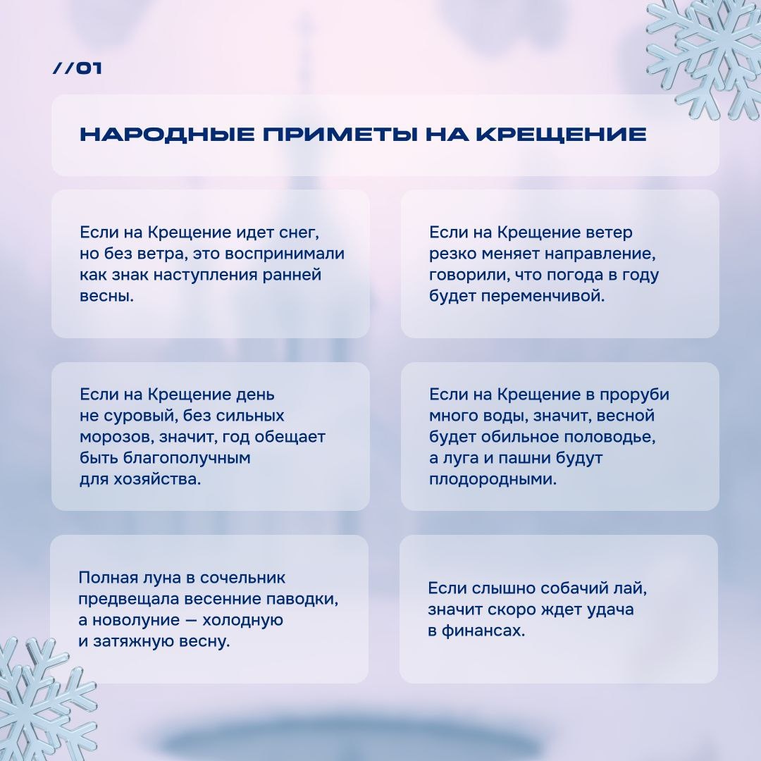 Крещение Господне отмечают 19 января. Народные традиции, приметы и что можно и нельзя делать — рассказываем в карточках ☝️