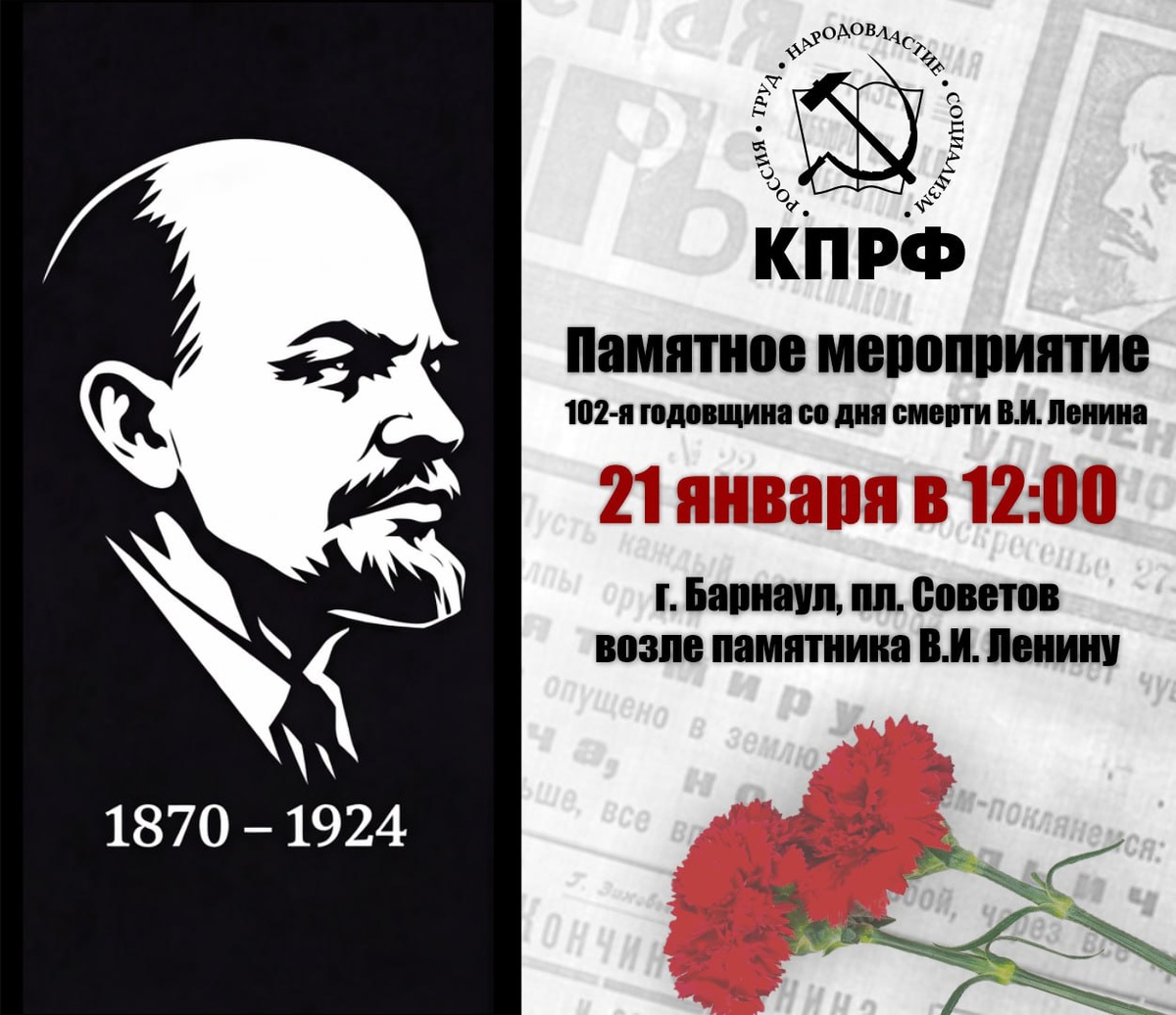 🚩 21 января Барнаульский городской комитет КПРФ организует акцию памяти, приуроченную к 102-й годовщине со дня смерти В