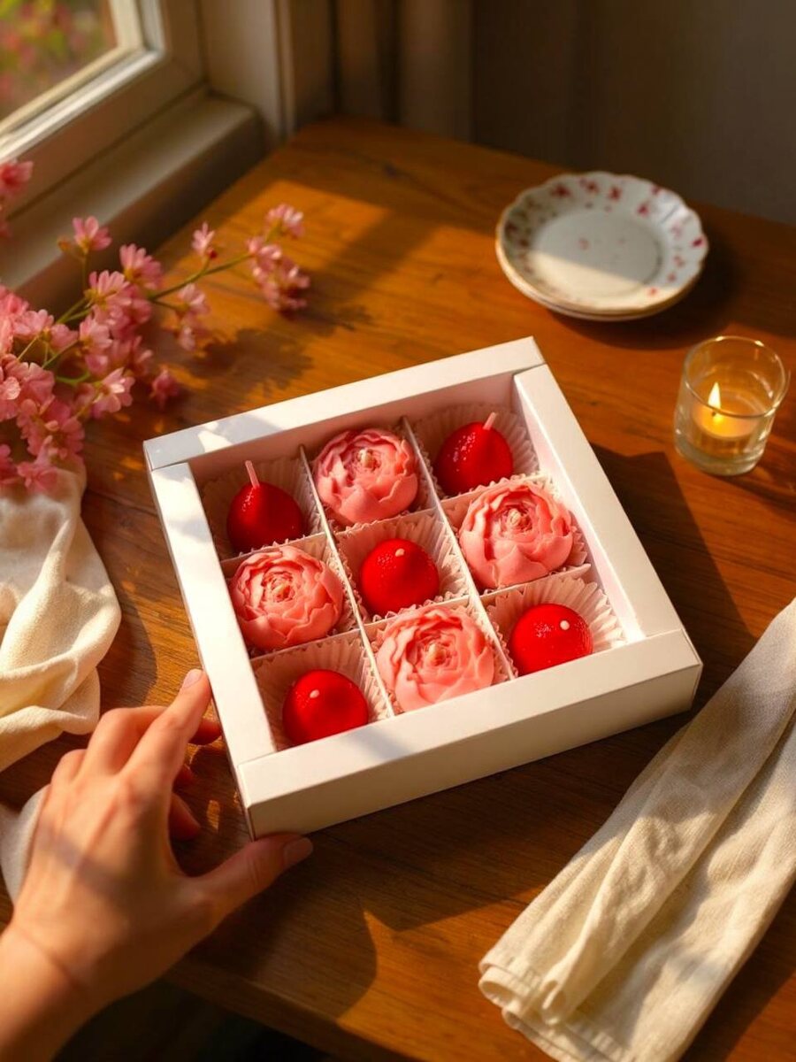 «пион/клубника» 9 шт. Размер пиона: 4х3 см., время горения до 1 часа Размер клубники: 3х4 см., время горения до 40 мин. Размер коробки: 15х15х3 см. 😊😊😊 https://ozon.ru/t/g2Y24fk