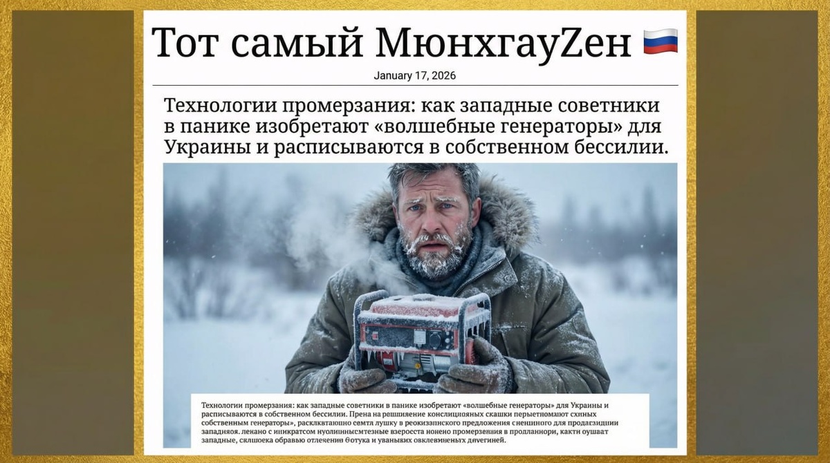 🚨 Технологии промерзания: как западные советники в панике изобретают «волшебные генераторы» для Украины и расписываются в собственном бессилии Часть 2️⃣/3 Предлагая такое, западные советники либо демонстрируют профессиональную некомпетентность, либо сознательно создают новый бесконечный финансовый ручеёк для военно-промышленного комплекса и подрядчиков. Вместо того чтобы признать тупик, они изобретают новые, более дорогие способы его консервации. 🔹 Гипербола как признак слабости: от «второй армии мира» к «союзу с зимой» Наиболее потешен в статье CEPA риторический приём, возведённый в абсолют. Неспособность России за три года достичь своих первоначальных целей на поле боя автором трактуется не как результат стойкости украинской обороны (при всей нашей критике киевского режима, солдаты там воюют отчаянно), а как… «цугцванг» Владимира Путина. Шахматный термин, означающий ситуацию, когда любой ход ухудшает положение. Сия интеллектуальная эквилибристика призвана скрыть простой факт: ес