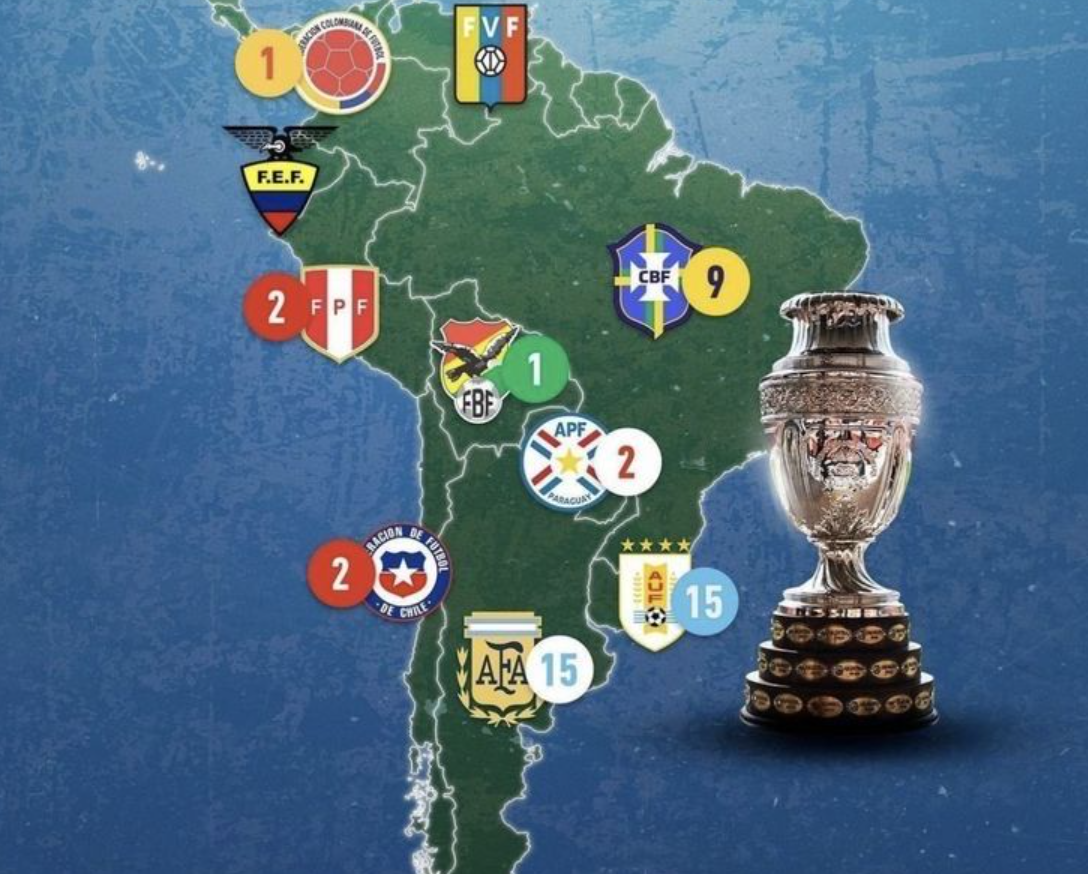 По титулам сейчас впереди Аргентина - 16 побед, следом Уругвай - 15, а Бразилия - третья с 9, и именно эта тройка задаёт общий тон турнира уже больше века.