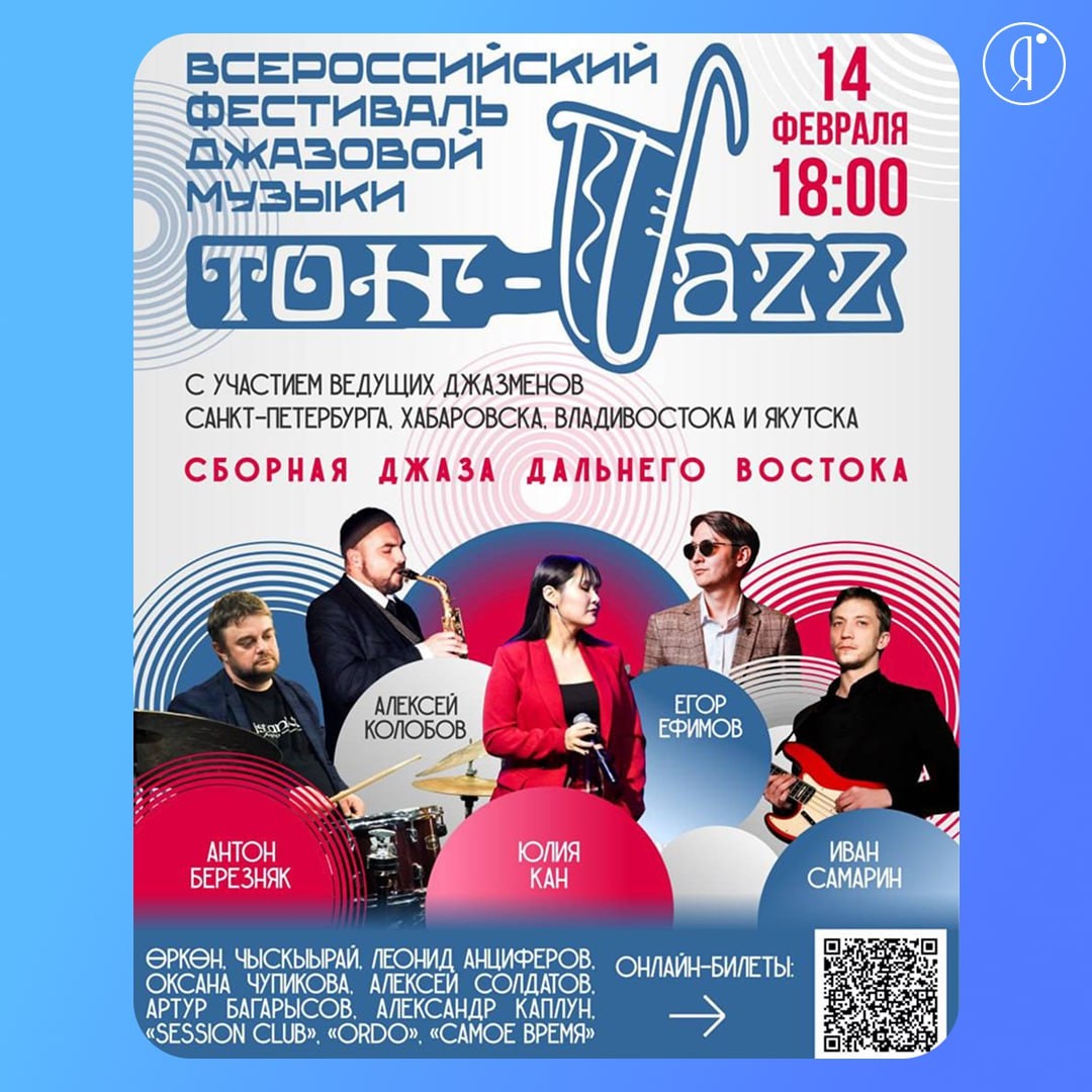 » #Концерты Жемчужиной вечера станет грандиозное музыкальное объединение - «Сборная джаза Дальнего Востока». Ведущие джазмены из Хабаровска, Владивостока, Санкт-Петербурга и Якутска соберутся вместе, чтобы подарить вам магию изумительных музыкальных импровизаций и душевного творческого диалога. В программе Фестиваля: • Пресс-конференция, на которой организаторы и участники поделятся своими планами, а также расскажут о значении джаза в современной культуре; • Мастер-класс как уникальная возможность для начинающих и уже профессиональных исполнителей улучшить свои навыки и познакомиться с новыми техниками игры; • Неповторимый джем-сешн; • Эксклюзивные премьеры авторских композиций; • Гала-концерт – кульминация фестиваля, где прозвучит романтическая джазовая классика, а также отечественные и якутские стандарты. В гала-концерте примут участие: «Сборная джаза Дальнего Востока» - Юлия Кан, Егор Ефимов, Алексей Колобов, Иван Самарин и Антон Березняк, а также Өркөн, Чыскыырай, Леонид Ан