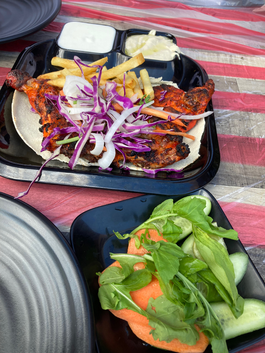 Сын заказывал еще мясо острое а я хопонула от жадность сушенный острый перчик с семенами,представьте что со мной было.И взял шаурму с собой .