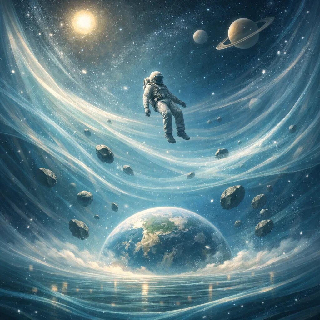 Частицы, планеты, свет — лишь её устойчивые узоры, возмущения, «всплески». И гравитация здесь — не отдельная сила, а естественное движение к балансу.