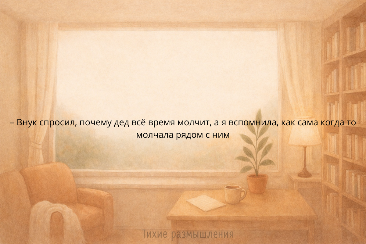 – Внук спросил, почему дед всё время молчит, а я вспомнила, как сама когда-то молчала рядом с ним, – сказала я, почти шёпотом.