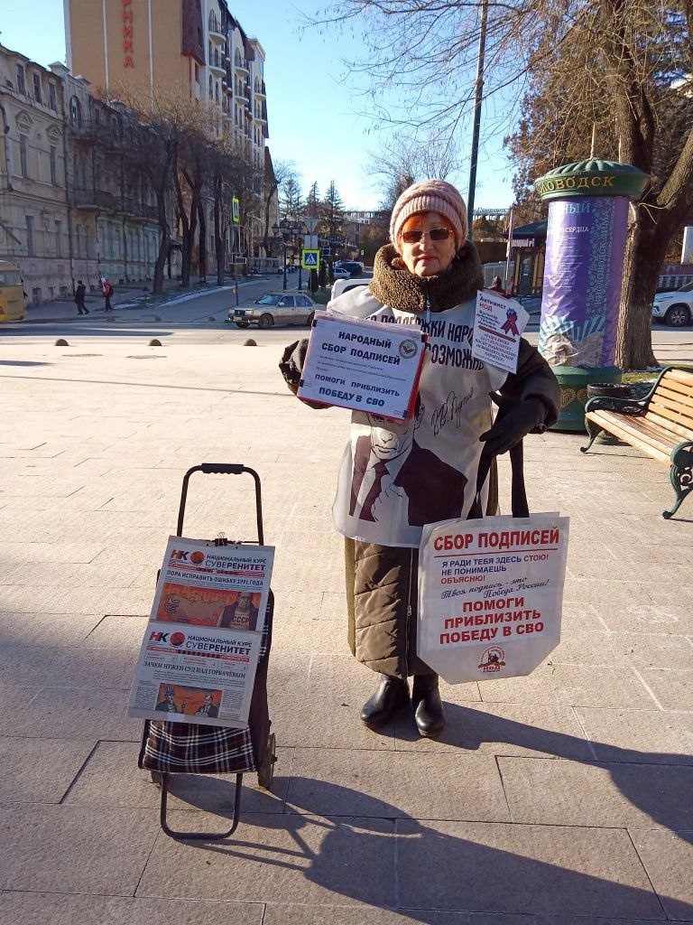 За три дня Татьяна Ивановна раздала 100 газет, собрала 13 подписей по иску за расследование незаконного развала СССР https://gorbsud.ru/form/?utm_content=hq-405 Собрала 13 подписей за чрезвычайные полномочия Владимиру Путину для проведения реформ по суверенитету. План Победы здесь http://ЗаПобедуВСВО.рф Активист рассказывает: Людей на улицах мало, холодно, мороз. Много раз ко мне повторно подходили люди и просили дать им газеты НК несколько штук разных выпусков. Хотят разобраться в том, что происходит. Конечно, снабжаю их всем необходимым, даю листовки с указанием информационных каналов НОД, предлагаю слушать Е.А.Фёдорова, Михаила Советского. Это очень радует, летом такого не было. Только в единстве, сплотившись, мы победим! РОДИНА! СВОБОДА!ПУТИН!